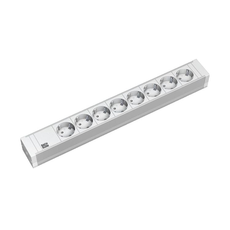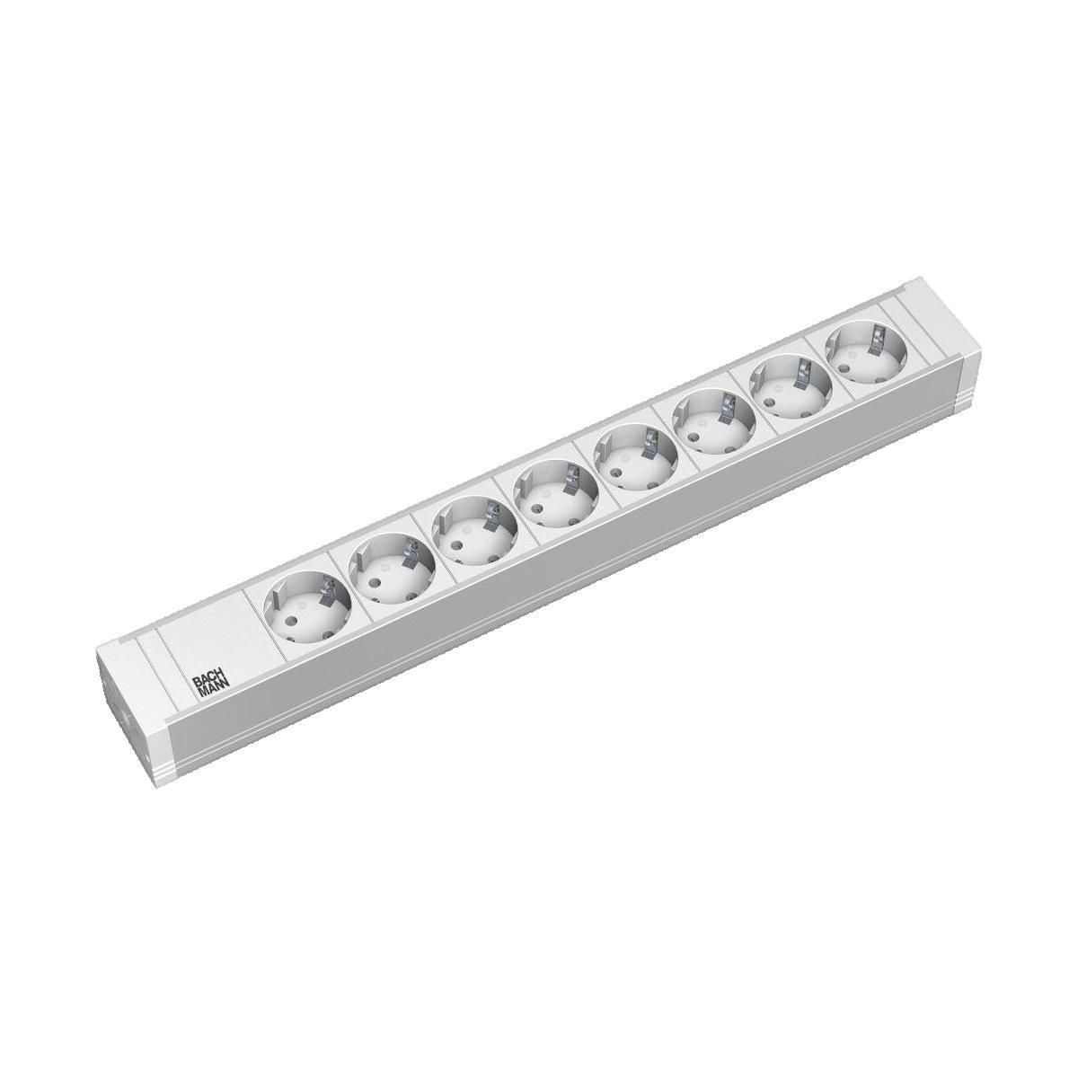 La Multiprise Professionnelle Bachmann est spécialement conçue pour une utilisation en bureau et en centre de données. Elle s'adapte parfaitement aux armoires de serveur de 48,26 cm, avec ses 8 prises type F disposées à un angle de 35°, garantissant une distribution électrique fiable et sécurisée. F