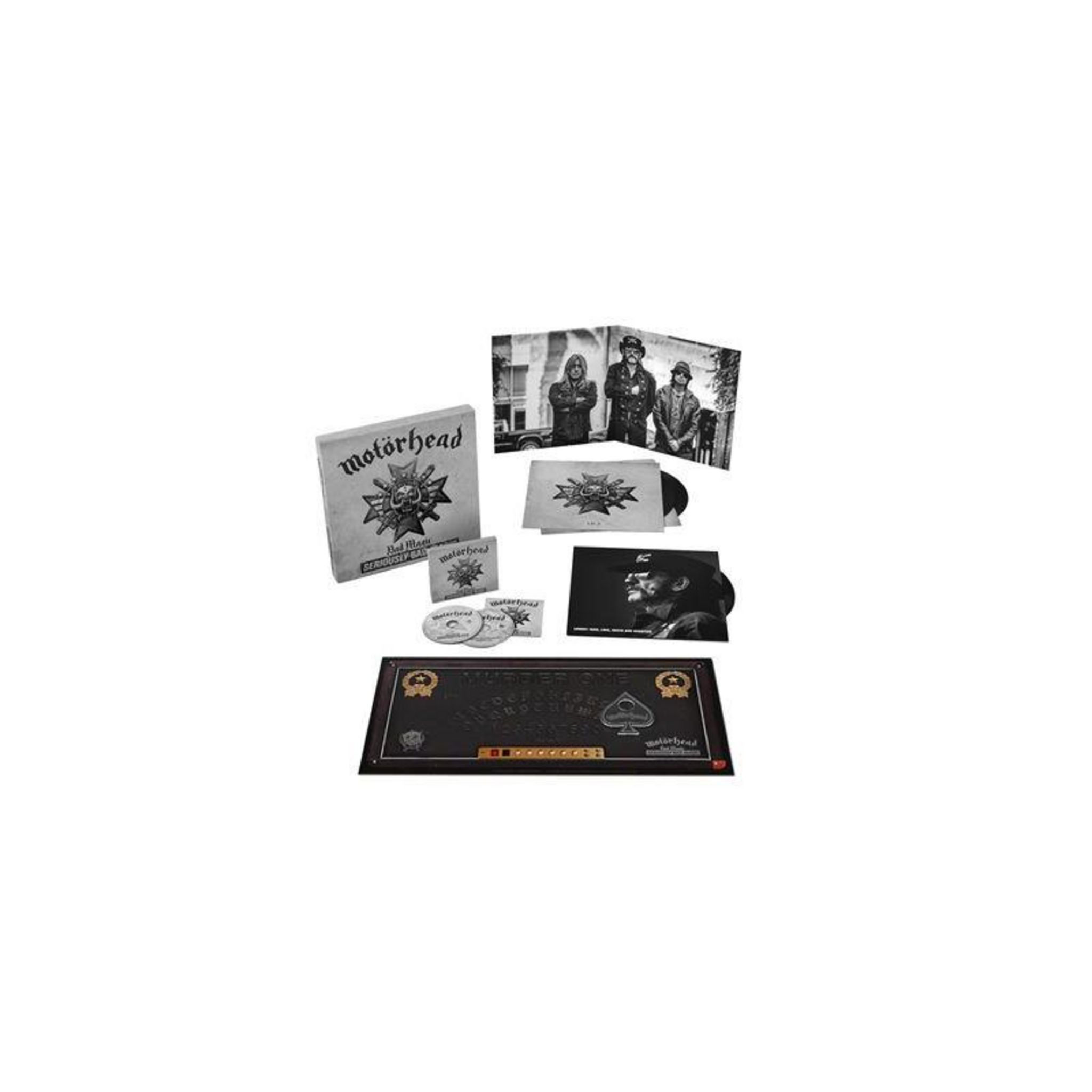 Ce coffret exceptionnel propose une édition baptisée 'Seriously Bad Magic', comprenant deux vinyles, deux CD, un interview exclusif et un bonus inédit avec deux morceaux non publiés, ainsi qu'une performance live explosive lors du Fuji Rock Festival 2015. Le tout est agrémenté d'un objet rare : un plateau Ouija Motörhead, pour une expérience immersive unique.