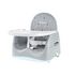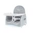 Pratique et hygiénique, la grande tablette repas se règle en profondeur, pour toujours s'adapter à la croissance de votre enfant. Elle est amovible et se range facilement derrière le dossier, pour ne pas la perdre. Le réhausseur se transforme en petit fauteuil pour des activités manuelles par exemple !
