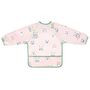 Le bavoir manches longues rose de Badabulle en matière légère et souple est idéal pour manger confortablement puisqu'il s'adapte aux mouvements de votre petit.