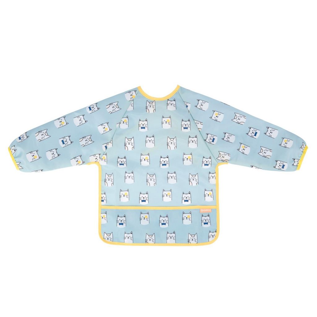 Une protection optimale est assurée avec ses manches longues élastiquées aux poignées. Sa grande poche centrale retient les petits pois qui voudraient s'échapper de l'assiette !