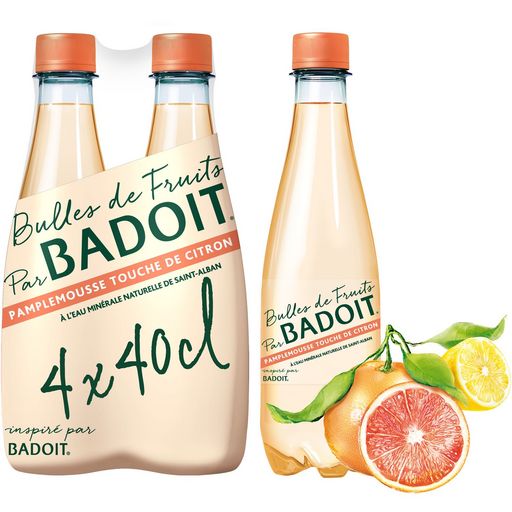 Eau minérale gazeuse aromatisée au pamplemousse et citron