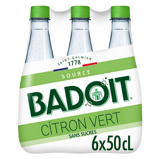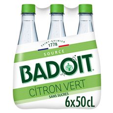 Eau minérale naturelle gazéifiée Badoit (99,9%), arôme naturel de citron - citron vert