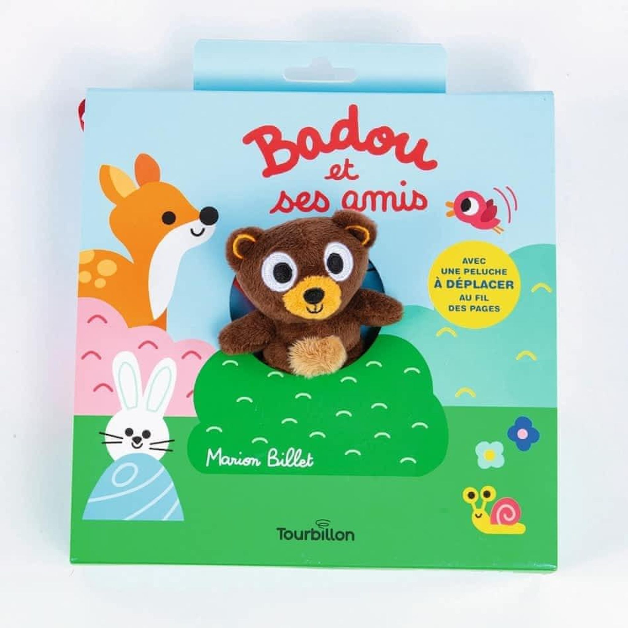 Fais vivre à la petite peluche Badou une incroyable journée avec ses amis ! Une lecture interactive pour les tout-petits Accrochée au livre tissu, Badou, une adorable petit peluche ours, est à déplacer de pages en pages. Grâce à un système astucieux de pochettes en tissu, on peut cacher Badou derrière un buisson, le faire se baigner dans la rivière, se reposer dans un hamac... Badou, un petit héros tendre et attachant L'enfant s'amuse avec la petite peluche Badou, attachée au livre par un petit lien en tissu et s'invente ses toutes premières histoires. Le petit ours se balade dans des tableaux joyeux, aux couleurs fraiches, illustrés par Marion Billet.