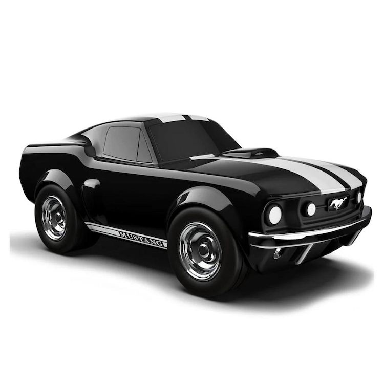 Mini voiture Ford Mustang noire en métal, livrée en boîte cadeau. Un modèle emblématique pour petits passionnés.