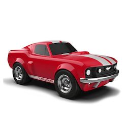 Ford Mustang rouge en version miniature, livrée dans un coffret cadeau. Un jouet vintage au look intemporel.