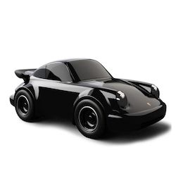 Réplique miniature Porsche 911 noire (20x10x7,5 cm), livrée en coffret cadeau (23x10,5x12,5 cm). Dès 3 ans.