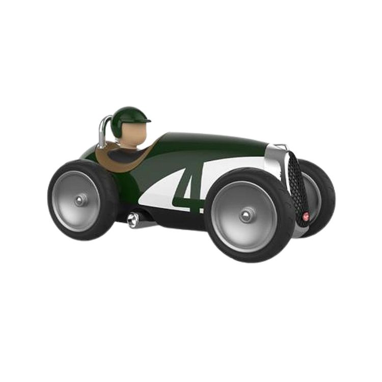 Voiture miniature verte en métal, format 18x9x10 cm. Livrée dans une élégante boîte cadeau (22x10,5x9,5 cm). Dès 1 an.