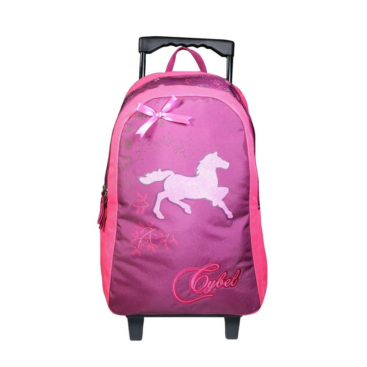 Le sac à dos à roulettes 2 compartiments Cybel sera à coup sur le sac préféré de votre enfant. Avec son design fleuri et pailleté, les amoureux des chevaux, des licorne et de la nature seront comblés ! Ce grand sac à dos avec ses 2 compartiments permettra à votre enfant d'y ranger sans problème tout