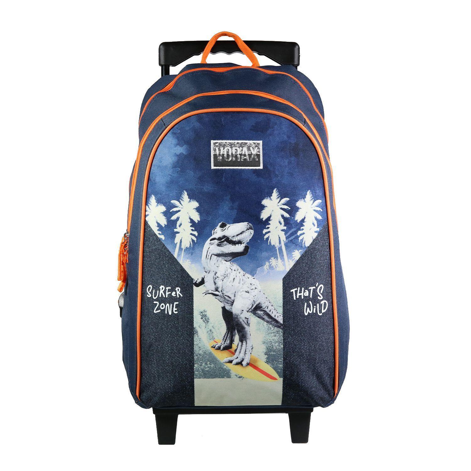 BAGTROTTER Sac à dos à roulettes Vorax Bleu Dinosaure Surf