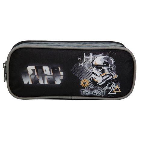 La trousse rectangulaire 2 compartiments Star Wars sera idéale pour accompagner à l'école. Prenez le contrôle de la galaxie avec ce design Stormtrooper ! Cette grande trousse avec ces 2 compartiments permettra à votre enfant d'y ranger toutes ses fournitures scolaires. Ses dimensions de 23x7x10cm son adaptées pour les altes de maternelle et de primaire. Coloris noir. 100% polyester. Solide et pratique, cette trousse est idéale au quotidien.