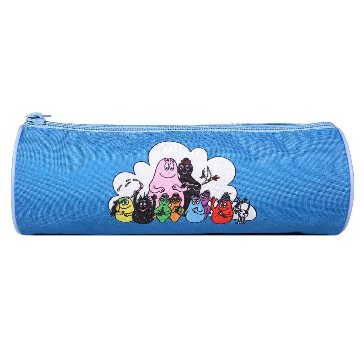 Cette trousse ronde bleue Barbapapa est conçue en polyester pour une résistance optimale au fur et à mesure des années.
