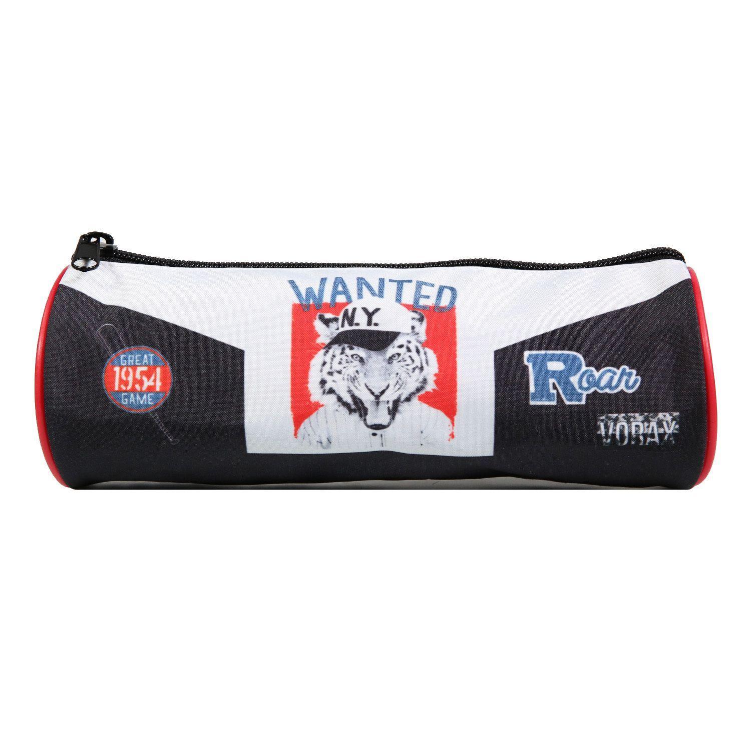 BAGTROTTER Trousse scolaire ronde Vorax Noire Tigre