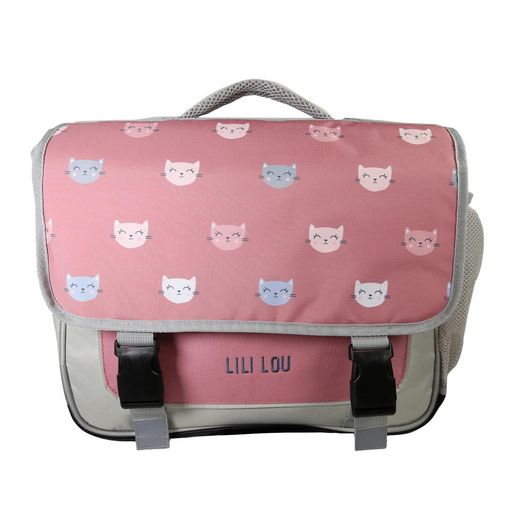 Cartable Scolaire Primaire 38cm Lili Lou gris et rose 2 Compartiments - Bagtrotter