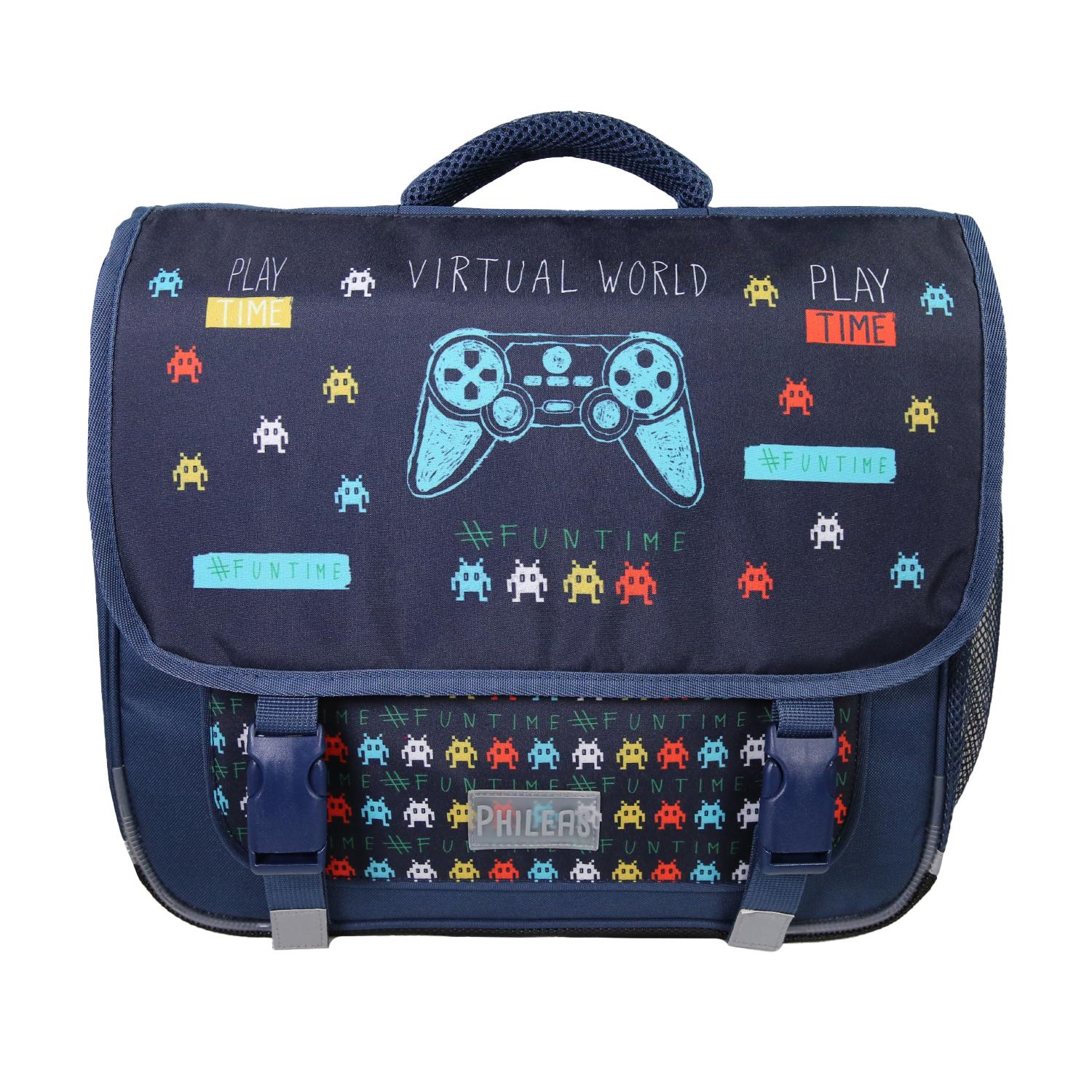 Cartable Scolaire Primaire 38cm Phileas - Jeux Vidéos Bleu Marine 2 Compartiments - Bagtrotter