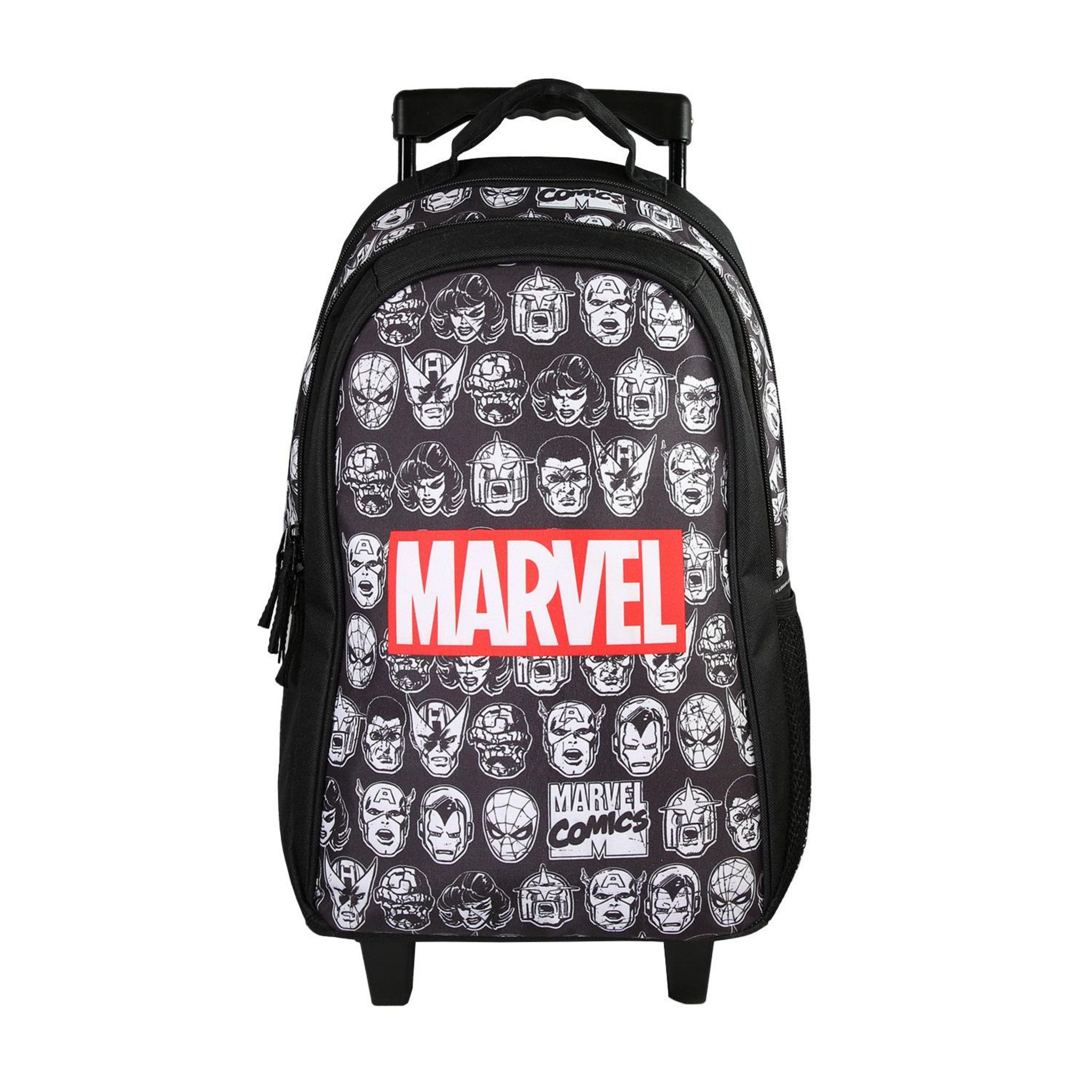 Choisissez ce sac à dos à roulettes noir orné de motifs inspirés de l'univers Marvel Avengers, idéal pour les petits super-héros en herbe pour chaque nouvelle journée d'école.*DOUBLE FONCTIONNALITÉ, DOUBLE EFFICACITÉ*