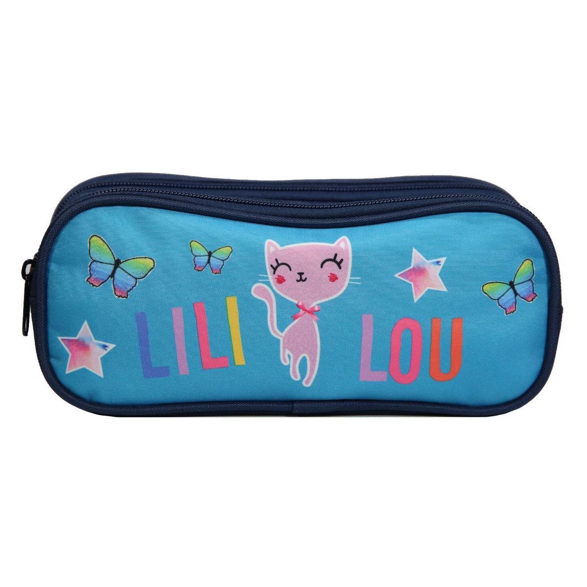 La trousse rectangulaire 2 compartiments Lili Lou sera idéale pour accompagner votre enfant. Ce design est coloré, notre petit chaton star est bien entouré avec des papillons et des étoiles. Il ravira tous les fans de chats ! Cette grande trousse avec ces 2 compartiments permettra à votre enfant d'y ranger toutes ses fournitures scolaires. Ses dimensions de 23x7x10cm son adaptées pour les altes de maternelle et de primaire. Coloris bleu. 100% polyester. Solide et pratique, cette trousse tiendra tous les jours compagnie à votre enfant.