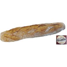 Cette baguette à l'aspect rustique et à la mie légèrement alvéolée est fabriquée à partir de farine de froment et de farine de seigle. Elle sera la compagne idéale de vos charcuteries, terrines et viandes en sauce. Son process de fabrication utilise un pétrissage modéré, une fermentation longue avant cuisson sur four à sole.