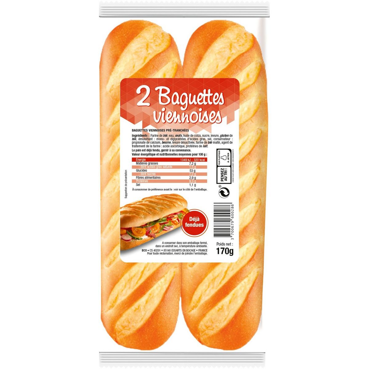 Les Baguettes Viennoises sont gourmandes et fondantes. Elles sont idéales en tartines pour le petit-déjeuner ou en sandwich pour le déjeuner, grâce à leur format en long déjà fendu et leur goût peu sucré.