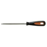 Section triangulaire effilée vers le bout. Taille simple sur les faces et sur les chantsMatière de la tête: AcierLongueur de la lame (en mm): 100Type de piqûre: Mi-douceUsage du produit: Pour l'affûtage de tout type de scies à denture fine couchée.Forme: TriangulaireType de manche: ErgonomiqueProdui