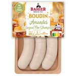 Ingrédients : Viande de porc 61%, LAIT frais demi-écrémé pasteurisé, OEUFS frais pasteurisés, AMANDES effilées 5%, gras de porc, Cognac Fine Champagne 3%, fécule de pomme de terre, sel, arômes, poivre, boyau naturel de porc.