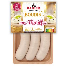 Ingrédients : Viande de porc 27%, LAIT frais demi-écrémé pasteurisé 21.4%, gras de porc, viande de dinde 14%, eau, morilles réhydratées 3%, amidon de maïs, apéritif à base de vin, sel, arômes, amidon modifié de pomme de terre, protéines de LAIT, poivre , plantes aromatiques, boyau naturel de porc.