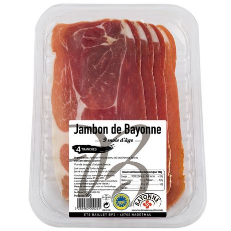 Jambon frais de porc, sel, saccharose, épices, Conservateur : salpêtre, extraits d’épices, plante aromatique