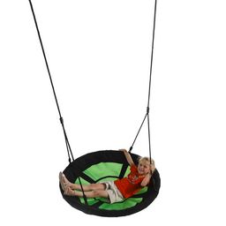 La balançoire nid est un siège de balançoire de design moderne. L'assise verte et noire est constituée de mailles en matière imperméabilisée et a un diamètre de 98 cm. Facile à régler en hauteur. Charge maximale de la balançoire nid : 100 kg. Ce siège pour balançoire a une longueur de câble réglable et une assise confortable. Très grande assise: 98cm ! Les cordes sont très solides, longueur: 100 cm.