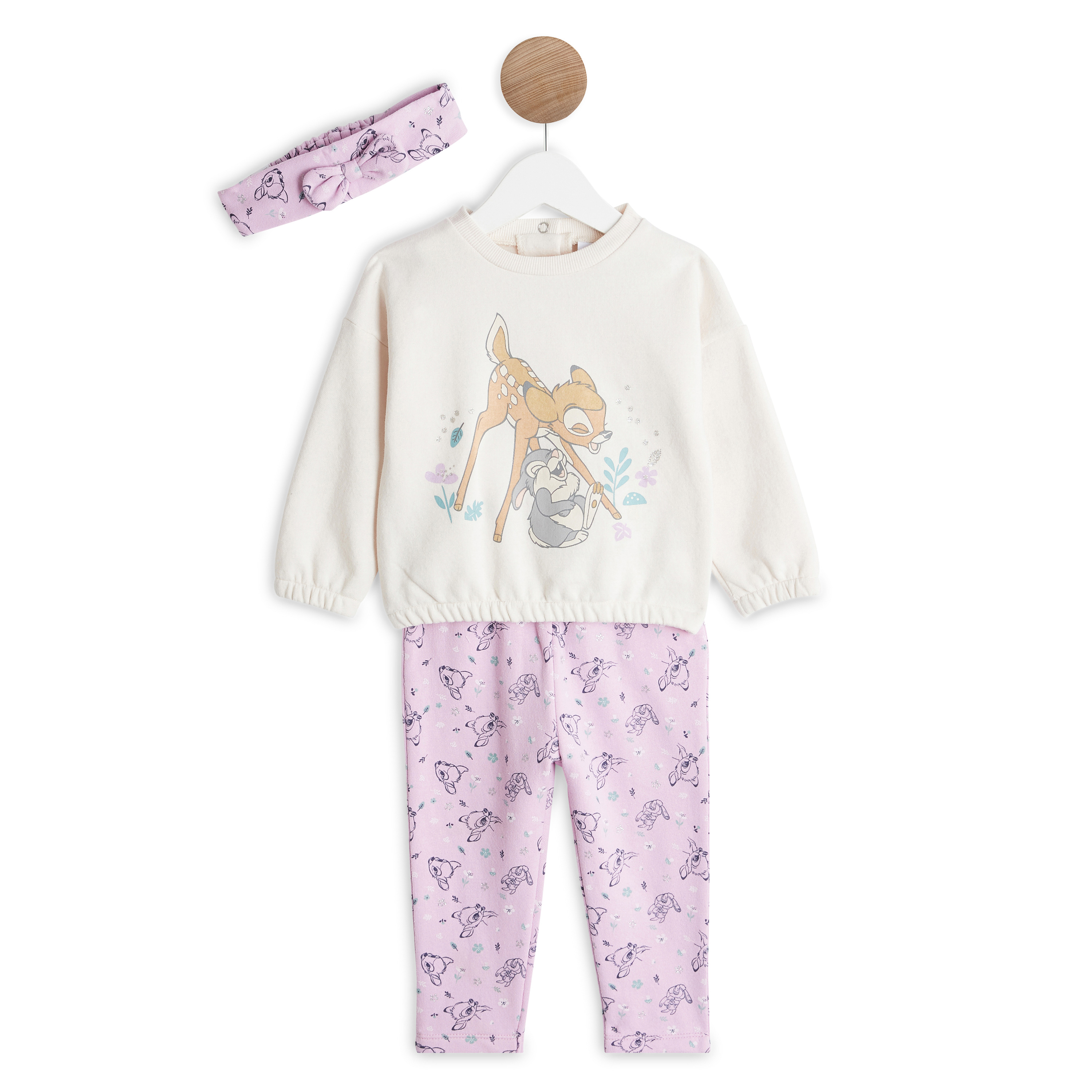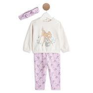 Votre petite princesse sera tout confort dans cet ensemble trop craquant à l'effigie de Bambi ! Il est composé ; d’un sweat à motif placé devant ultra tendre accompagné du rigolo Pan-pan, avec poignets et base élastiqués, d'un pantalon en imprimé continu à taille élastiquée, et d'un bandeau t