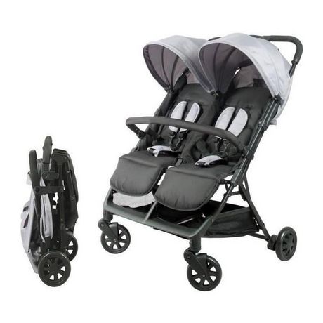 Bambisol - DS209 GRIS NOIR - Poussette Double Cote a Cote | Pour Jumeaux des la Naissance, Pliage Ultra-Compact | Noir Gris