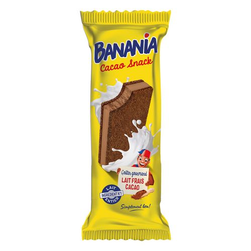 Deux couches de génoise au cacao (42,3%), richement garnies d'une crème lactée au cacao (57,7%).