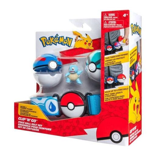 - Inclut 1 ceinture réglable + 2 Poké Balls + 1 figurine Carapuce 5 cm