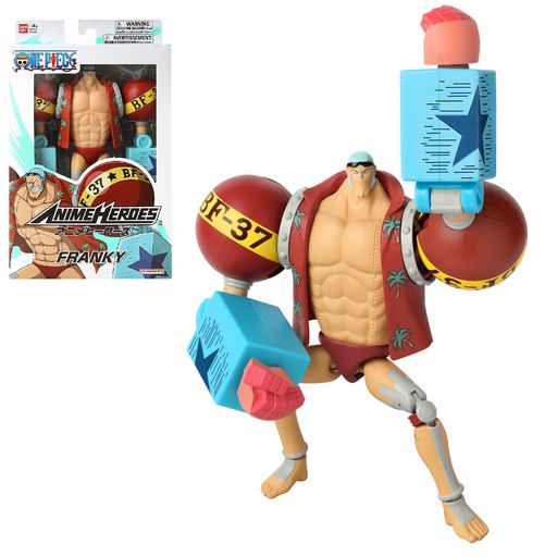 "Avis aux fans, joueurs et collectionneurs de la saga One Piece, les figurines Anime Heroes sont faites pour vous, Particulièrement détaillées, elles mesurent 17 cm et peuvent prendre toutes les positions grâce à leurs 16 points d'articulation. Ces figurines sont livrées avec des mains supplémentaires pour recréer toutes les scènes de la série. Ici, retrouvez Franky le cyborg. Il est le charpentier de l'équipage du chapeau de paille. Il est celui qui construira le deuxième bateau de l'équipage, le Thousand Sunny. Il y a de nombreux modèles de figurines Anime Heroes One piece à collectionner."