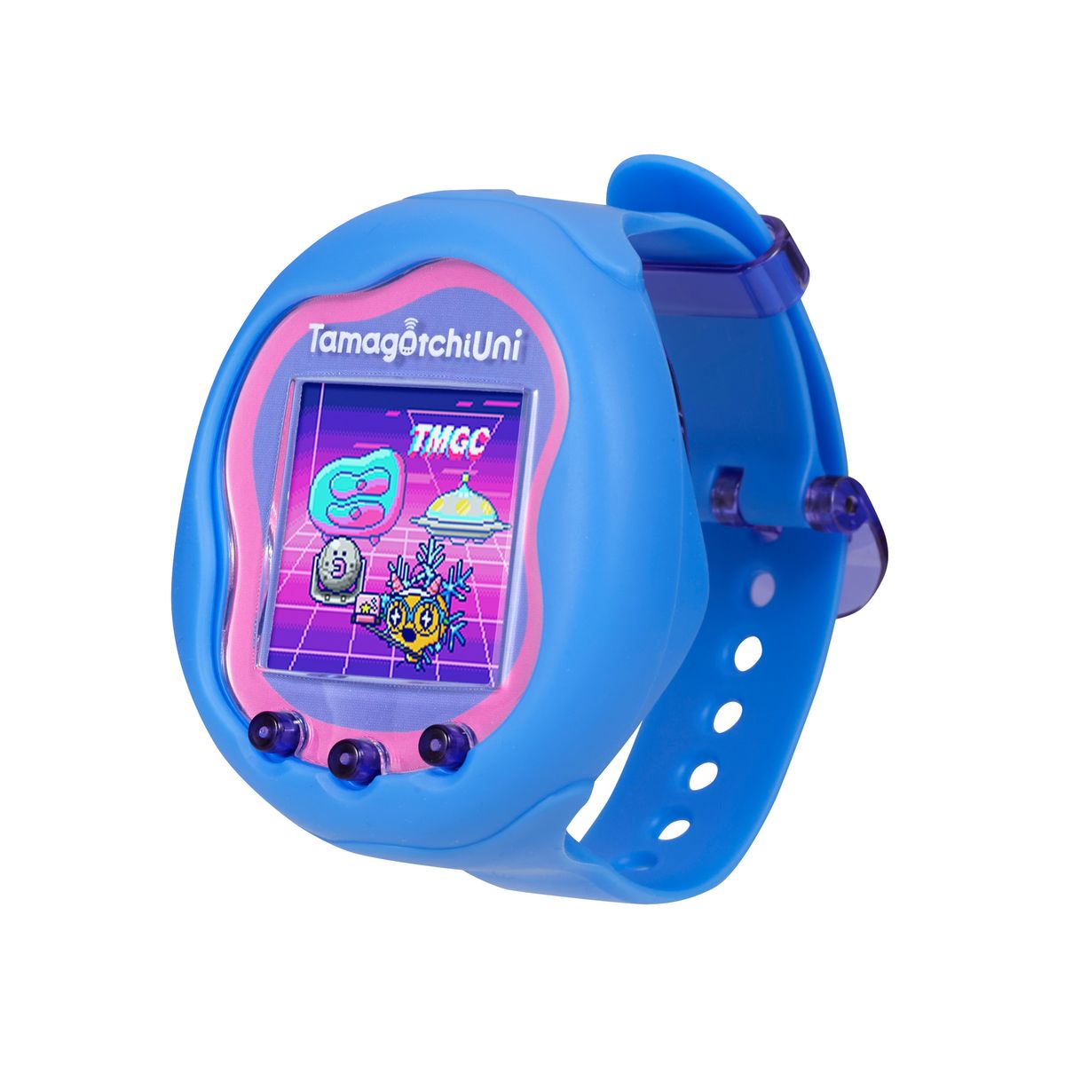 “Tamagotchi Uni” est un jouet qui vous permet de vous connecter avec les autres en élevant votre propre animal virtuel. En utilisant le Wi-Fi intégré, vous pouvez voyager dans le "Tamaverse " etvous connecter avec des Tamagotchis uniques du monde entier. Grâce à son bracelet vous pouvez l'emmener partout avec vous très facilement.