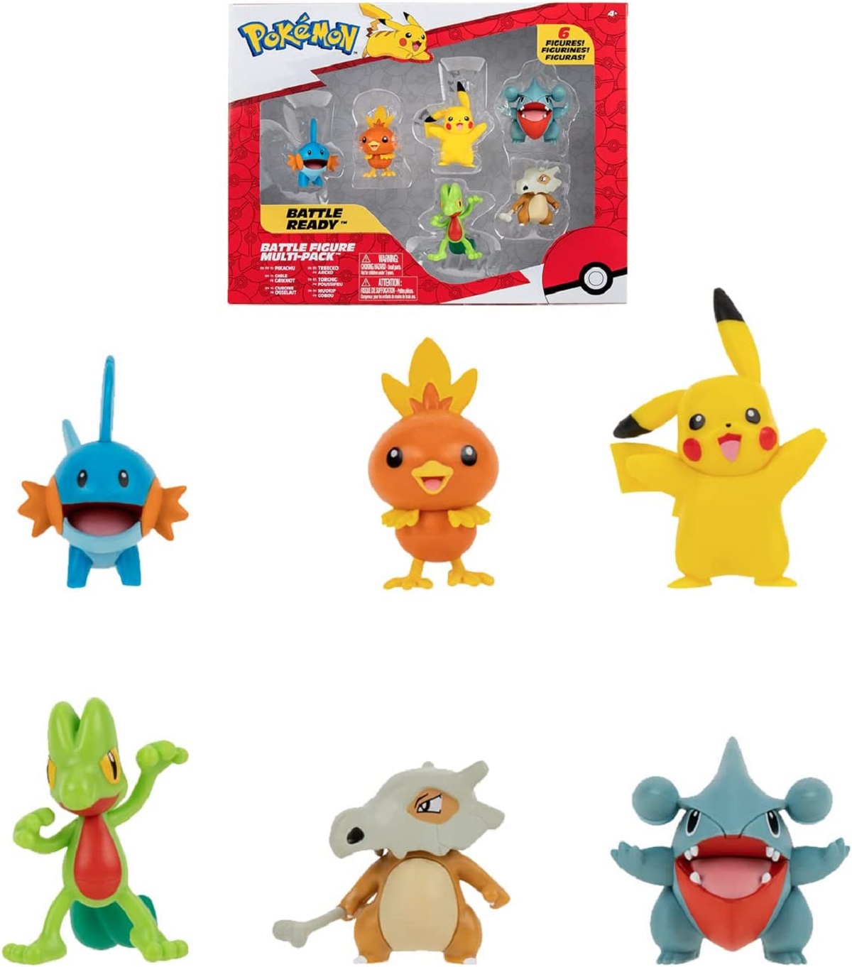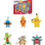Découvrez le pack Pokemon avec ses 6 figurines en format 5 cm : Pikachu, Poussifeu, Arcko, Gobou, Griknot, et Osselait !