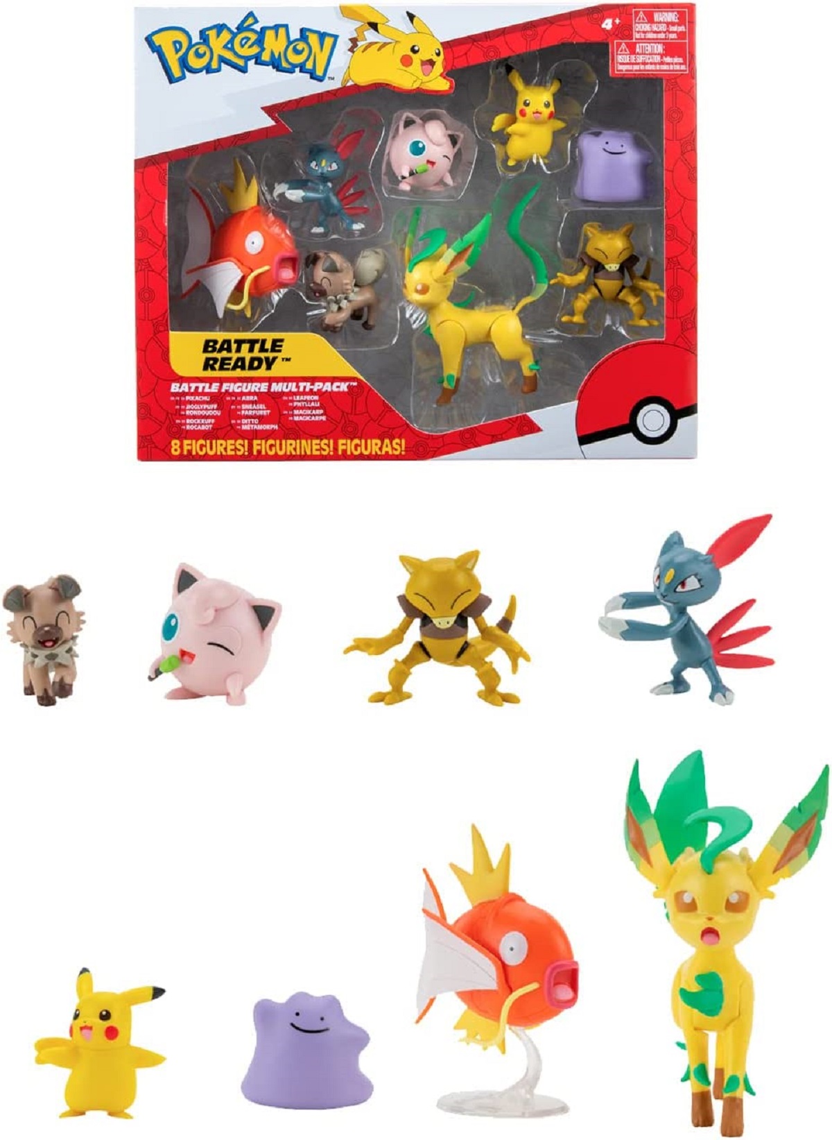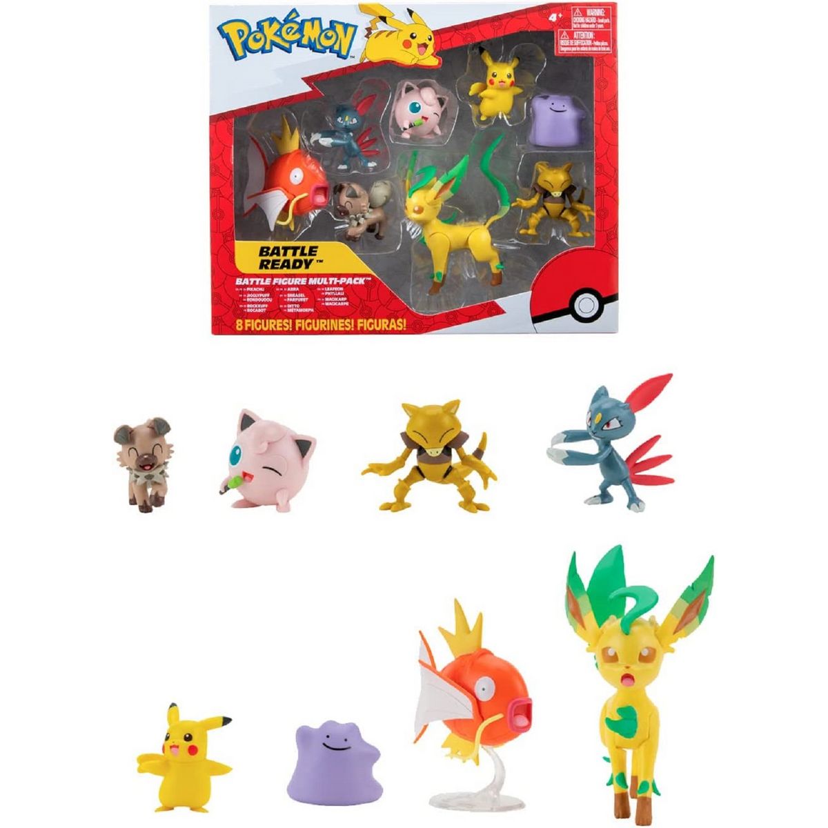 Découvrez le pack Pokemon avec ses 8 figurines en format 5 à 8 cm : Pikachu, Rondoudou, Rocabot, Farfuret, Abra, Métamorph, Magicarpe et Phyllali !