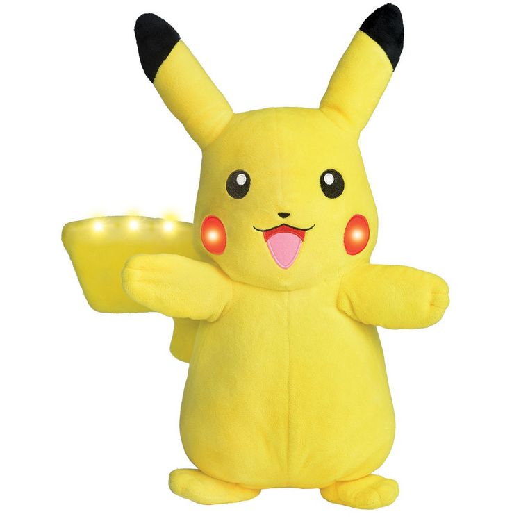 En savoir +Cette peluche Pikachu est une peluche interactive. En plus d'être douce et pleine de tendresse, elle est pourvue d'effets sonores et visuels : ses joues et sa queue s'illuminent dès que tu appuie sur ses mains. Tu entendra alors un bruit de tonnerre ! Apprends à le dresser !
