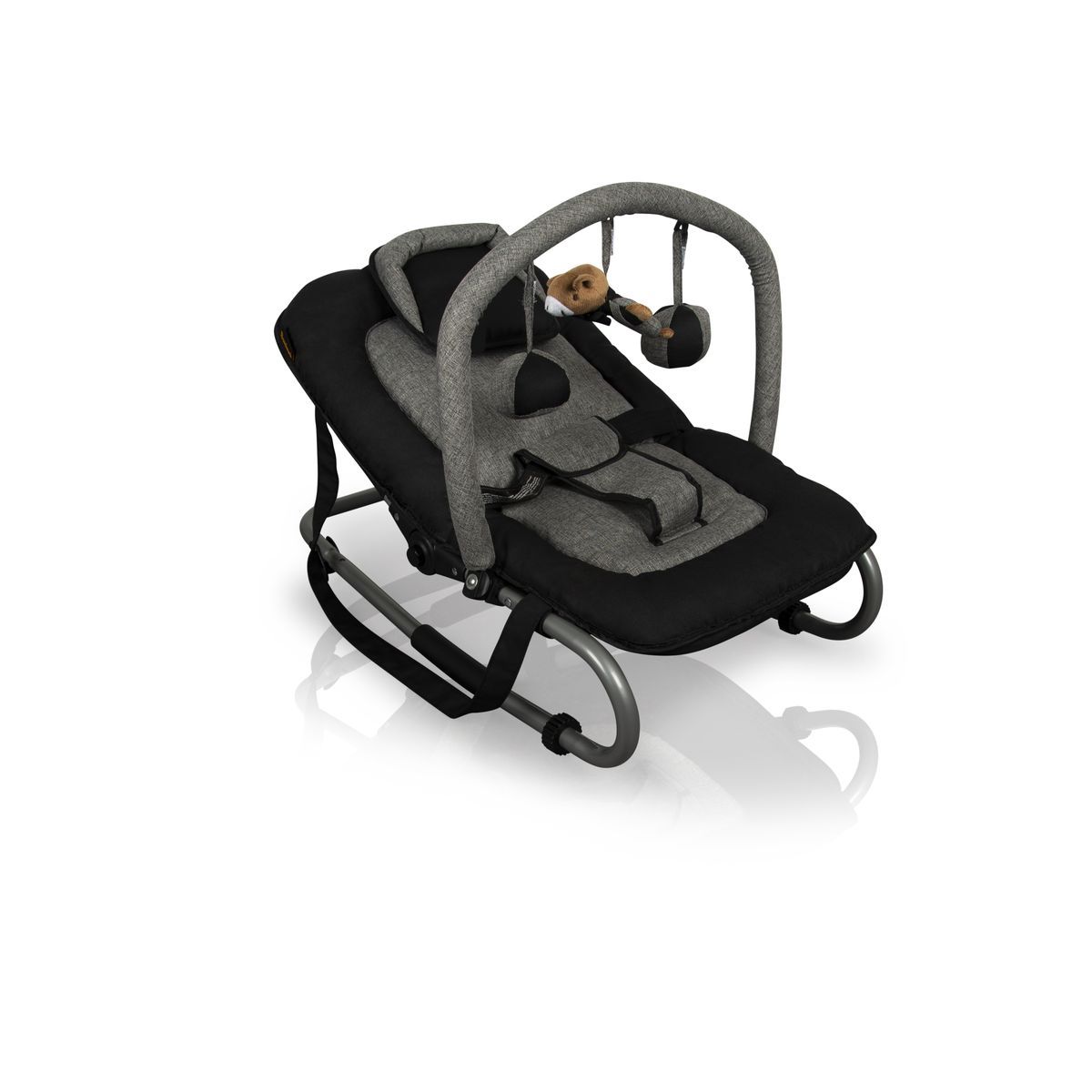 Dans le transat balancelle bébé Admiro de Baninni, les bébés peuvent se détendre complètement. Le transat est équipé d'un dossier et d'un repose-pieds réglable, afin que votre bébé puisse s'amuser en position couchée ou assise. L'arceau de jeux est également réglable et est équipé de 3 jouets souples et amovibles. Grâce à la ceinture de sécurité à 3 points, votre bébé peut s'asseoir en toute sécurité dans le transat. Grâce aux solides sangles de transport, vous pouvez également transporter facilement le transat bébé. Le Admiro convient de la naissance jusqu'à environ 6 mois (max. 9 kg).