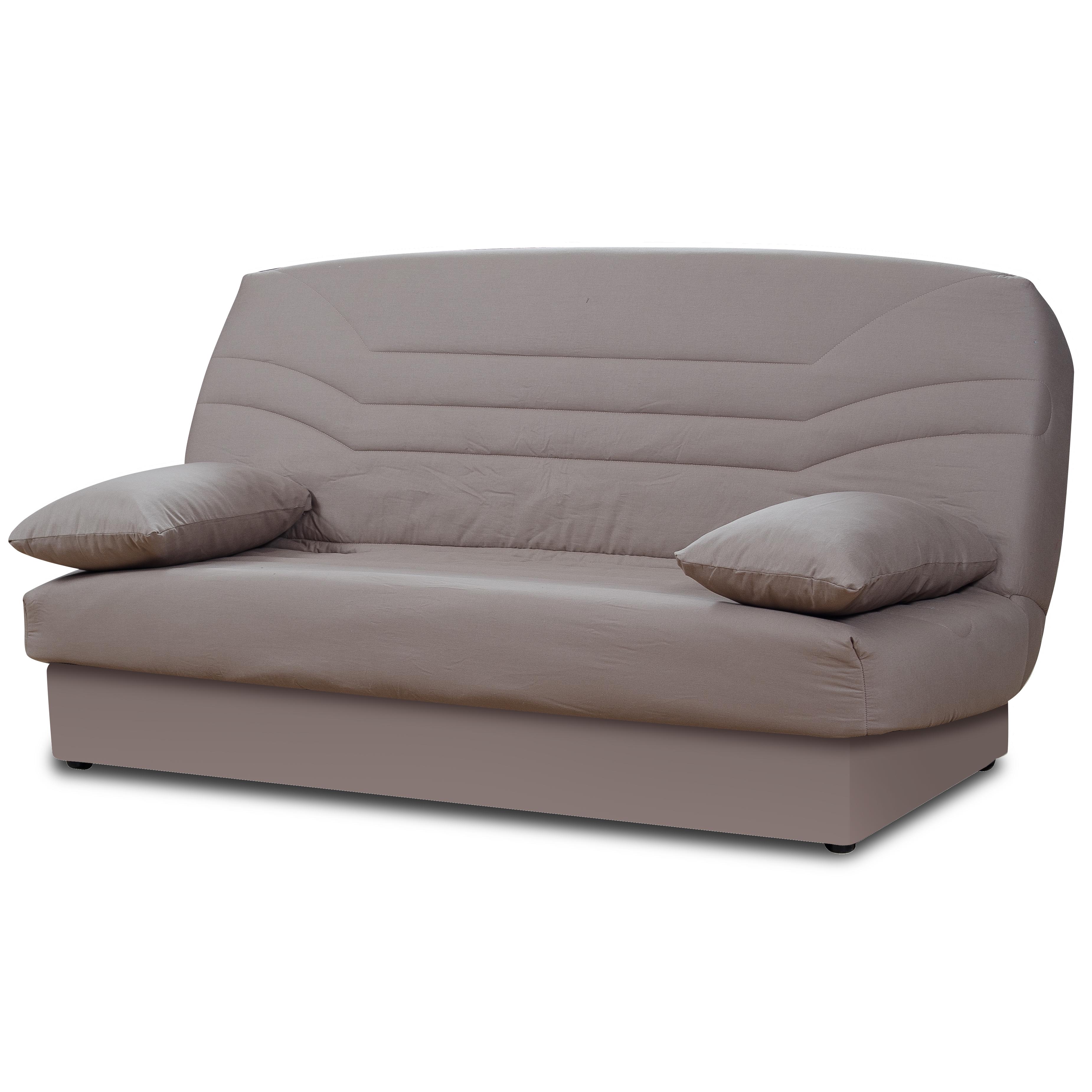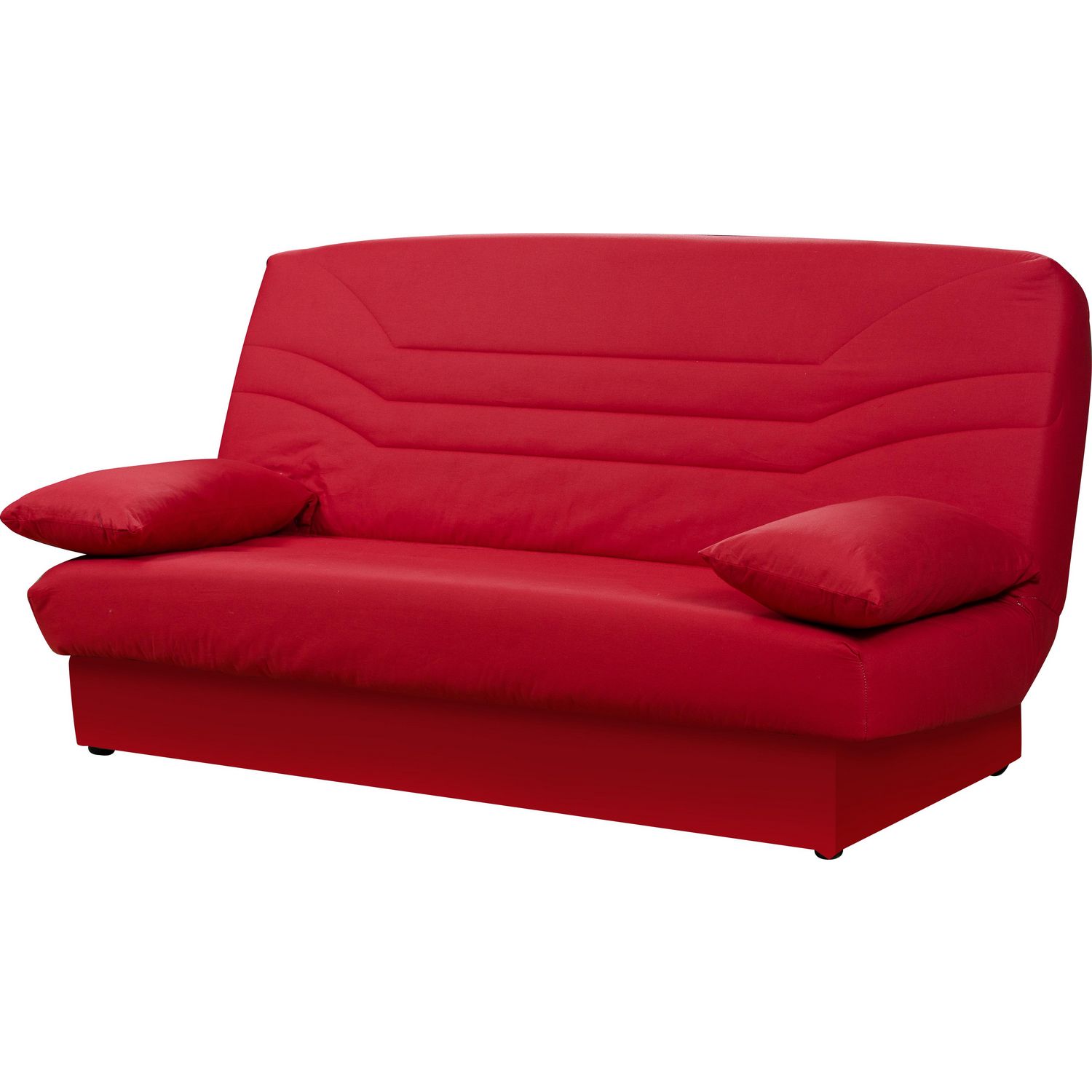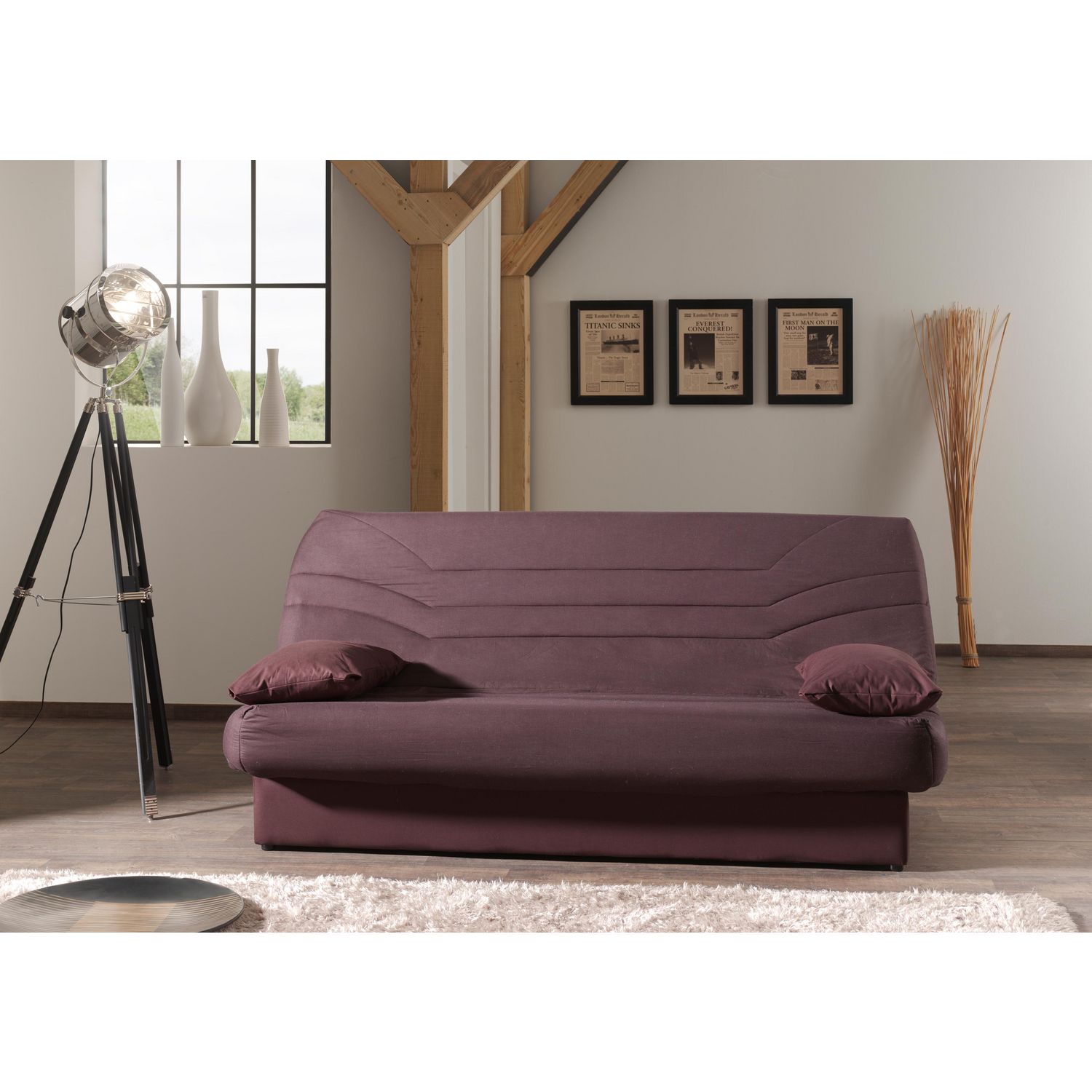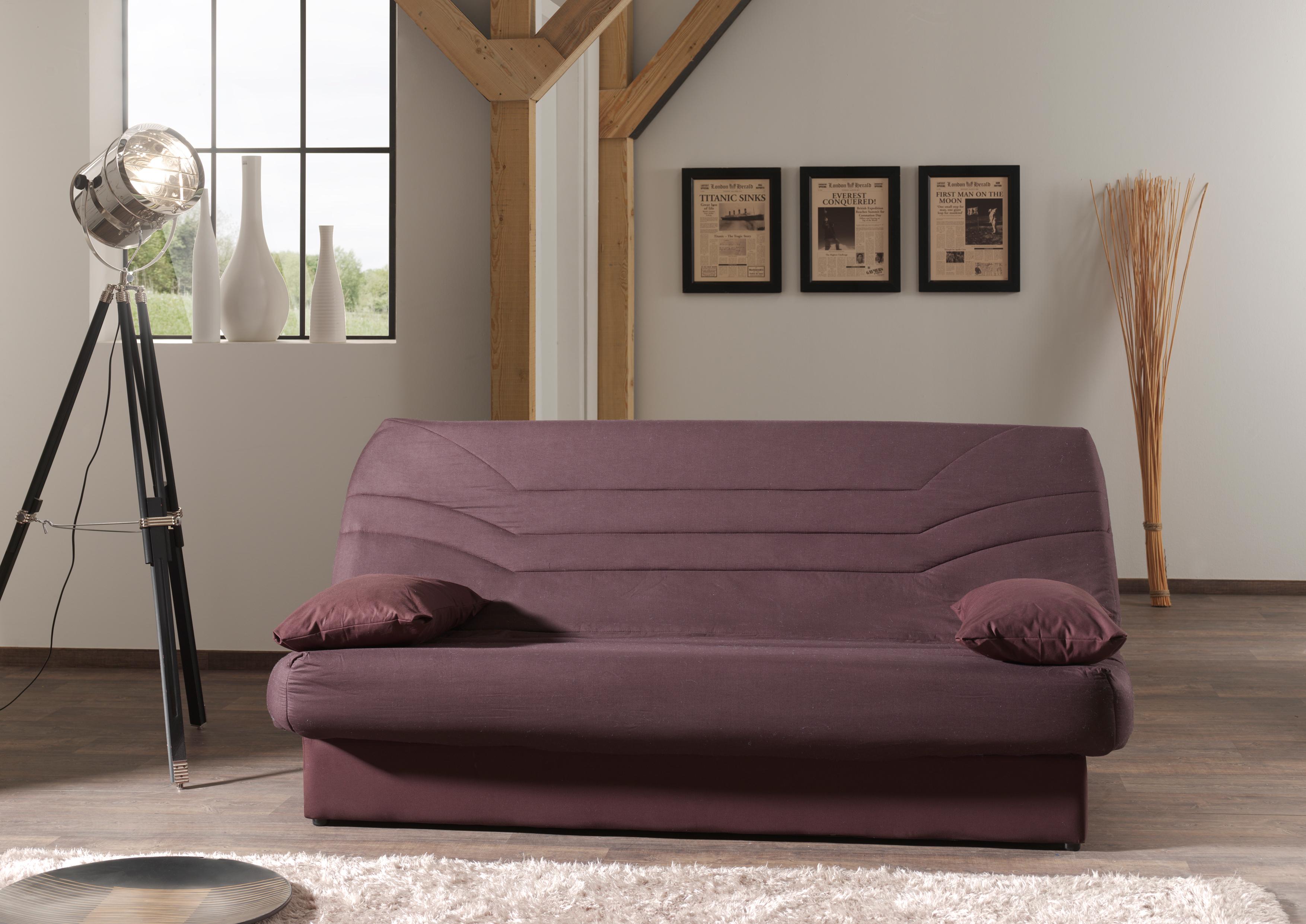 Un excellent rapport qualité prix pour cette banquette Clic-clac 3 positions qui offre un couchage 130 x 190 cm. Disponible en 6 coloris, sa housse est 100% coton, déhoussable et lavable en machine. 2 coussins inclus.