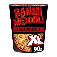 Variez les plaisirs avec cette recette BANZAÏ NOODLE format XL saveur Boeuf. Régalez-vous partout où vous le souhaitez grâce à sa cup ultra-pratique.