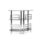 Informations Techniques : Dimensions : L. 120 x P. 58 x H. 107 cm Matières : Structure : Tubes d'acier Chromés Plateaux : Verre trempé laqué Noir Spécificités : Design moderne Deux tablettes de rangement Livré démonté avec notice de montage Montage facile Garantie : 1 an Poids : 30,4 kg Nombre de co