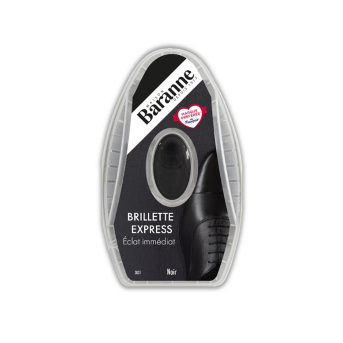 La Brillette version noir : La Brillette Express Baranne Noir redonne instantanément de la brillance à vos chaussures en cuir noir. Son format pratique s’emporte partout pour des retouches express en toute simplicité. Grâce à son indicateur de niveau, profitez d’une utilisation optimale jusqu’à la dernière goutte.