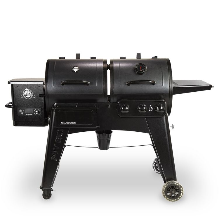 Le Pit Boss Navigator 1230 Combo Grill combine le véritable goût du bois avec la facilité du gaz pour vous fournir une expérience outdoor extraordinaire. Le barbecue Pit Boss Navigator 1230 offre la polyvalence d'un système de cuisson 8-en-1. Fumer, cuire, braiser, rôtir, griller, saisir ou dorer, le tout réuni dans un seul et même barbecue.
