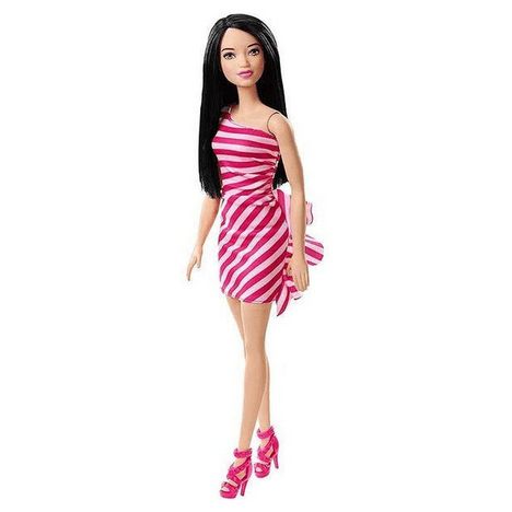 - 1 poupée Barbie asiatique portant une robe à rayures