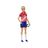 Ken joue au football en short noir et maillot bleu et rouge. Il porte des chaussettes rouges avec des chaussures noires. Un ballon est inclus. - pas de piles - 3 ans et +