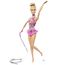 La poupée Barbie est prête a devenir une championne de gymnastique rythmique avec sa superbe tenue de gymnaste dans une couleur vive et son ruban argenté. Avec ses cheveux relevés en chignon, Barbie est prête à s'élancer et à devenir la reine de la discipline. 2 modèles disponibles : Barbie brune ou Barbie blonde. Les couleurs et les décorations peuvent varier.