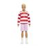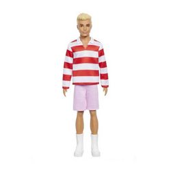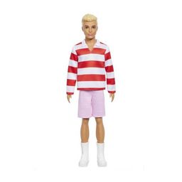 Découvrez la poupée Ken Fashionistas de Barbie, habillée d'un polo a rayures rouges et blanches, accompagné d'un bermuda rose et de boots blancs. Parfaite pour les enfants a partir de 3 ans, elle offre un style tendance et coloré.
