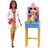 - Barbie Docteure porte une jolie robe fleurie, des chaussures roses et une blouse blanche et est fournie avec 1 stéthoscope rose, 1 instrument médical et 1 bloc-notes qu’elle peut tenir en main.