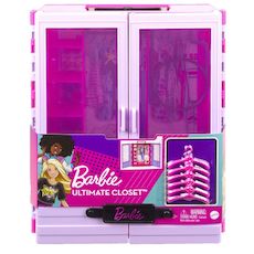 Découvrez le dressing portable Barbie, un accessoire essentiel pour organiser les vêtements et accessoires de toutes les poupées Barbie. Ce dressing élégant est conçu en plastique léger et durable, avec un extérieur violet et un intérieur rose. Il dispose de portes transparentes pour voir les tenues