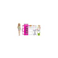 Découvrez le Coffret cuisine Barbie, un ensemble de jeu complet offrant plus de 30 accessoires dont un réfrigérateur, un îlot central de cuisine, et des étagères colorées. La poupée Barbie, habillée d'une robe à fleurs, permet aux enfants de simuler et imaginer différentes scènes culinaires tout en